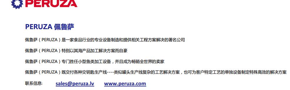 | 拉脱维亚公司出口鱼类加工设备 拉脱维亚PERUZA有限责任公司,成立于1991年,位于Mucenieki,注册号为LV40003039237,现有雇员60人。主要提供鱼类加工、蔬菜加工专业设备,并可提供海产品加工整体解决方案。现该公司欲拓展中国市场,有意者请与该公司联系。 ![]() 地址:Lejasrandoti”, Mucenieki, Ropažu nov., LV-2137, Latvia 联系电话:+371 6724 8036,+371 2924 5492 联系邮箱:boardmember@peruza.lv,sales@peruza.lv 联系人:Mr. Roberts Dlohi(公司董事) |