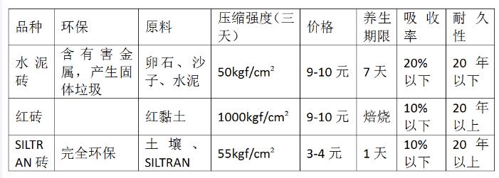| 韩国公司推出的SILTRAN可与全世界土壤加水混合(1:4),自然晾干制成的泥土砖强度与水泥砖相当。相比传统水泥砖或红砖,产品不含重金属等有害物质,生产过程简洁环保,产品废弃后可回归大自然不产生固体垃圾,而价格约为水泥砖的三分之一(韩国市场)。 SILTRAN适用于中国西部、东南亚、非洲等欠发达地区,适合当地缺乏水泥、砂石的地区用于房屋、道路等设施的建设。SILTRAN向中国市场进行推广,寻找中国代理商,核心原料可技术转让供当地生产。 SILTRAN砖与水泥砖红泥砖性能对比 ![]() SILTRAN砖适用领域 ![]() 底层独立住宅 ![]() 非机动车道路、人行道、路牙 ![]() 瓦砖、墙砖、地面、院子 联系电话:010-82217821、18252820281 联系邮箱:icc-icover@ccoic.cn 联系人:张先生 来源:中国贸易投资网 |